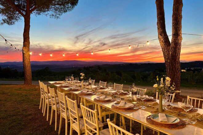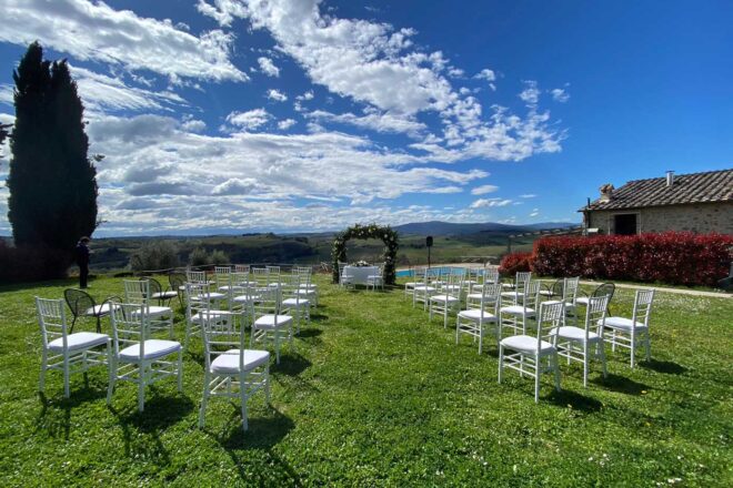 I futuri sposi avranno a disposizione un’esclusiva location di campagna immersa tra vigneti e oliveti di proprietà della Famiglia Zingarelli. Il nostro ristorante può proporre e creare menù tematici in base alle più diverse esigenze. Il grande parco e tutti gli spazi all’aperto del borgo sono inoltre la cornice perfetta per i vari momenti della cerimonia. Ogni attimo del vostro soggiorno, qui, sarà unico e indimenticabile. Un vero matrimonio toscano!